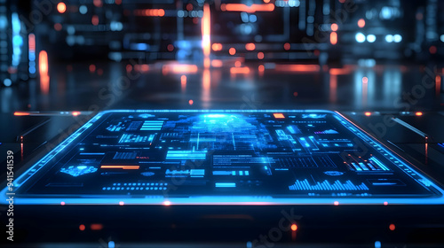 tablet, holographic, ai, trading, stock exchange, glowing, digital, workspace, technology, copy space, finance, icon, hologram, modern, futuristic, laptop, financial, computer