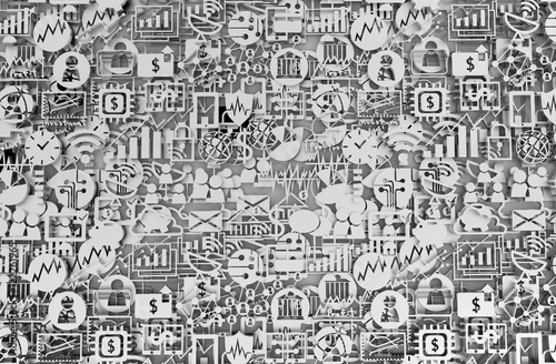 3D illustration , Fintech Investment Financial Internet Technology Concept. Financial icon and technology icon abstract background