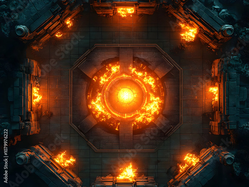 altar, ritual, temple, mystery, daemon, god, art, devil, hidden, game, flames, rendering, atmospheric, overhead, danger, energy, spiritual, heaven, three-dimensional, sacrifice, architecture, magic, occult, topview, dark, goddess, fantasy, fire, adventure, eerie, offering, night, background, paranormal, hell, illustration, religion, supernatural, burning, secret, ceremony, stone, power, mystical, ruin, digital artwork, glow, ancient
