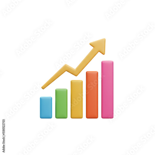 3D Illustration Growth Arrow with Bar Graph Finance Business Rising