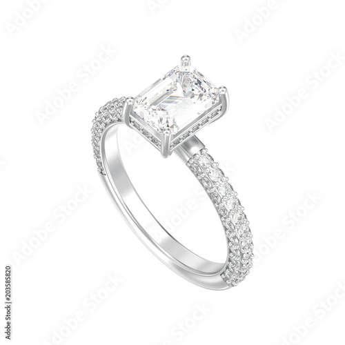 3D illustration isolated silver elegant solitaire decorative diamond ring