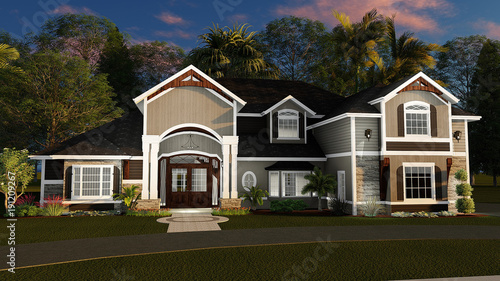 architecture, home, house, beautiful, summer, landscape, exterior, property, estate, real, lawn, residential, render, illustration, three-dimensional