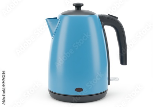 3D Illustration of Blue electric kettle isolated on white background, black handle