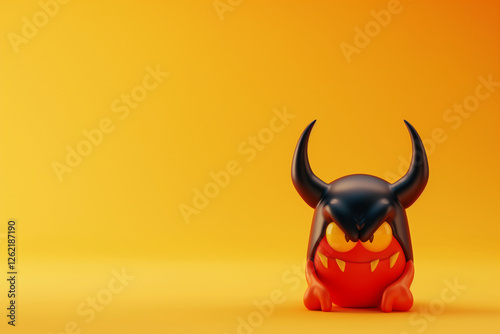 3D illustration of cartoon devil character isolated on yellow background with copy space. Generative AI