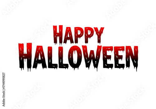 3d illustration of happy halloween text with dripping blood effect, isolated on transparent background