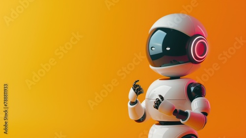 3D illustration of humanoid robot with white exterior and black visor on orange background
