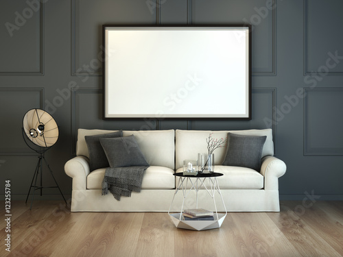 3D illustration of poster frame template, empty poster mockup, hipster interior design