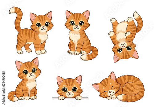 3d illustration of set of cute cartoon orange tabby kittens in various poses isolated on transparent background