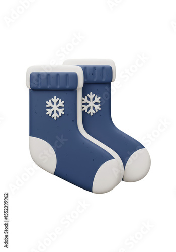 3d Illustration Of Warm Woolen Blue Winter Socks With Snowflake