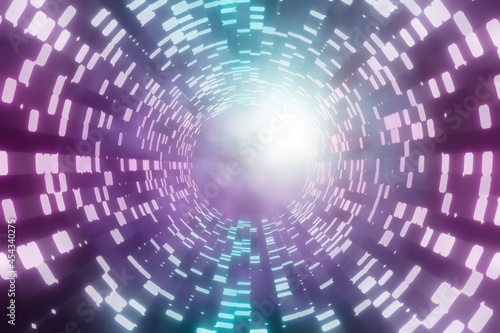 3D Illustration rendering abstract background. Pink blue circle graphic light with zoom blur on dark background.