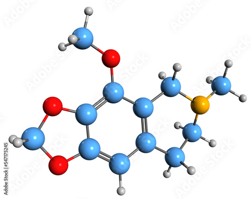 3D image of Hydrocotarnine skeletal formula - molecular chemical structure of phytochemical isolated on white background
