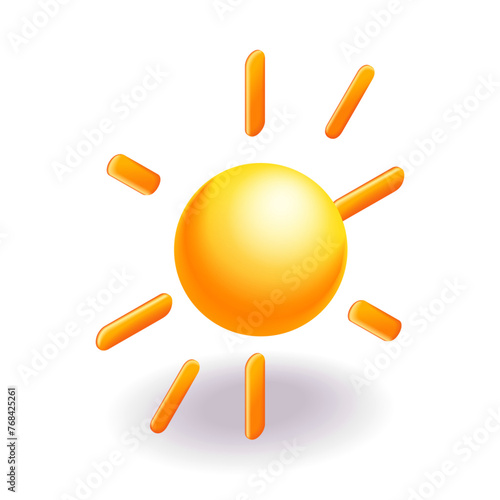 3D Isometric illustration, Cartoon. Yellow sun with rays, sun star. Summer, weather, nature, space concept. Vector icons for website