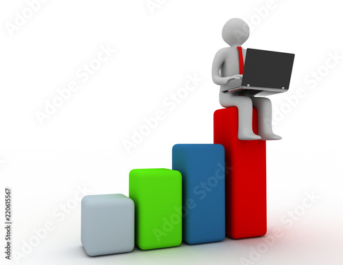 3d man sitting with Laptop on colorful business graph. rendered illustration