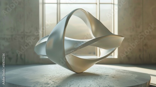 3d Minimalist Mobius Strips Suspended in Serene Atmosphere, Conveying Infinity and Continuity