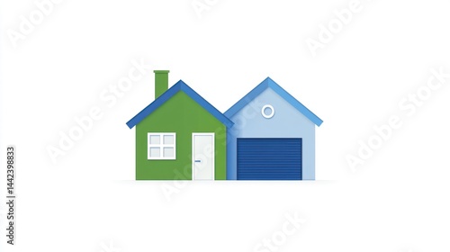 house, garage, three-dimensional, model, illustration, building, home, architecture, property, design, real, estate, modern, exterior, render, simple, graphic, image, minimalist, cartoon, flat, icon, digital, graphic design, object, apartment, urban, suburb, 2, building, concept, background, white