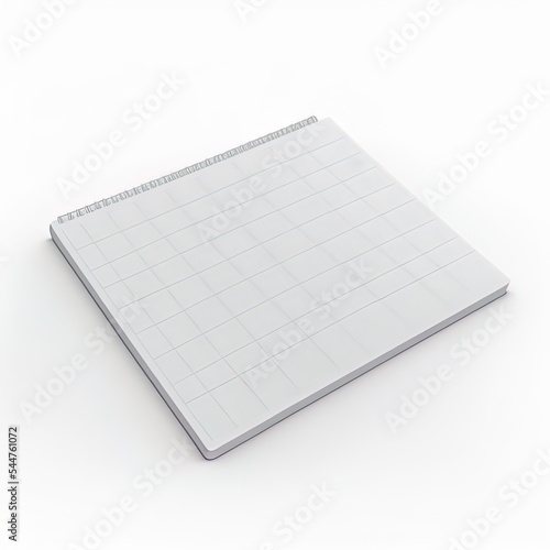 3D Note or calendar. Minimal creative design. Note book. White grid paper with empty copy space for text or date. Plan concept. Cartoon realistic icon isolated on white background. 3D Rendering