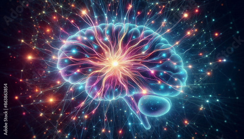3D of Nerve cells that sparkle in the brain
