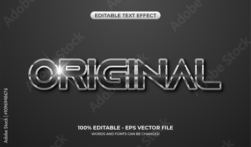 3D Original black text effect. Editable glossy luxury silver metallic text effect
