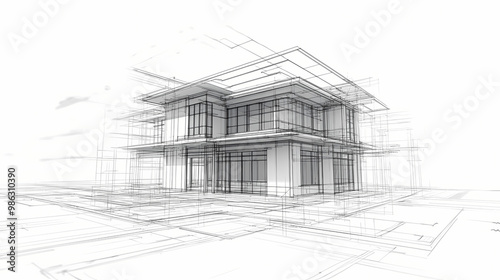 three-dimensional, perspective, blueprint, building, scan, background, modelling, illustration