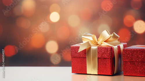 3d realistic red gift boxes with gift bow with gold ribbon. Generative AI