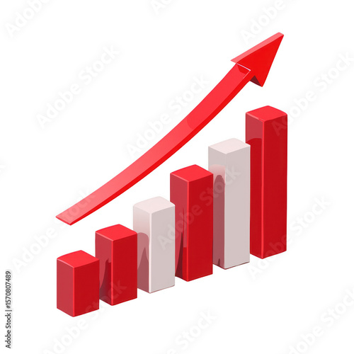 graph, arrow, upward, trend, growth, increase, business, finance, success, progress, datum, chart, bar, statistic, economy, investment, profit, revenue, performance, development, strategy, analysis, report, three-dimensional, red, white, isolated, transparent, background