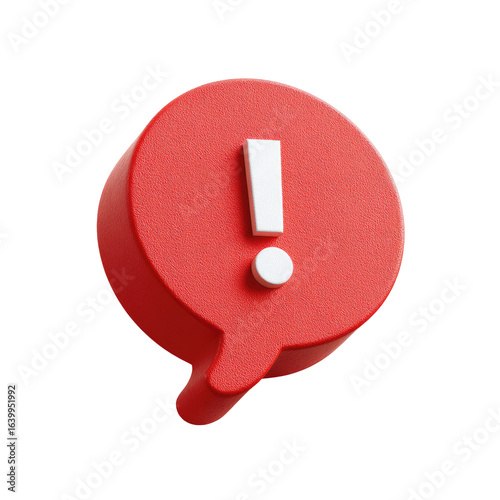 speech, bubble, red, exclamation, point, alert, warning, three-dimensional, icon, symbol, communication, message, attention, caution, notice, important, critical, urgent, problem, error, issue, notification, digital, graphic, design, element, vector, illustration, graphic design, exclamation mark, information, visual, symbolism