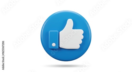 three-dimensional, render, glossy, blue, circle, round, thumb up, icon, like, approval, positive, feedback, cyberspace, web, app, design, graphic, element, buttons, interface, digital, technology, white, embossed, symbol, agreements, satisfaction, success, optimistic, good, excellent, quality, rating, vote, choice, selection, preference, modern, clean, minimalist, simple, illustration, background, isolated, white background, marketing, branding