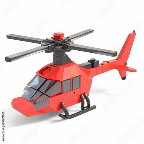 3D Render, Low Poly style of toy helicopter vehicle, on isolated white background, Generative AI