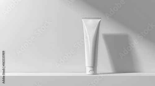 3d render mockup of cosmetic bundle for skin hair care. White plastic bottles and tubes with black caps in row on bright white backdrop