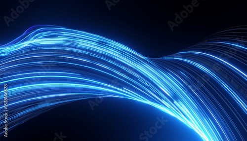 3d render modern blue neon wallpaper glowing dynamic lines over black background streaming energy particles moving and leaving glowing tracks curvy ribbon