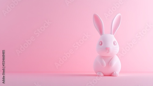 3D render of a simple, white bunny figurine against a solid pink background.