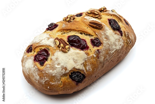 3D Render of Baked Cranberry Walnut Bread, Isolated on White Background