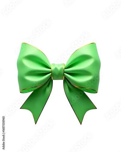3D Render of Light Green Bow, Isolated on Transparent Background