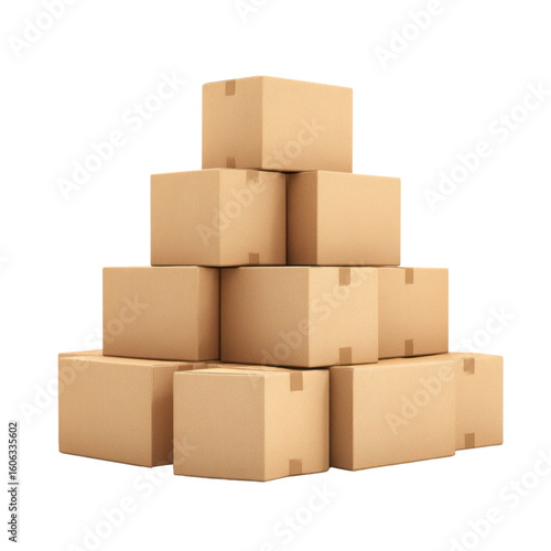 box, cardboard, shipping, logistic, delivery, package, cardboard box, transport, warehouse, storage, stack, pile, brown, cardbox, rendering, design, illustration, e-business, business, industry, distribution, freight, cargo, packing, move, product, good, merchandise, material, object, isolated, white background, realistic, modern, clean, simple, geometric, shape, pyramid