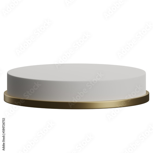 3d render of white and gold luxury circular podium product display element