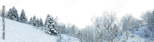 panoramic view, mountain, winter, snow, alpine, frosty, cold, ice, glacier, winter scenery, mountain chain, white background, clipping path, digital artwork, computer graphic, wilderness, snow-covered, highland, atmospheric, digital rendering, mountain ridge, isolated design