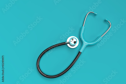 3d Render Realistic Medical Stethoscope on Color Background.