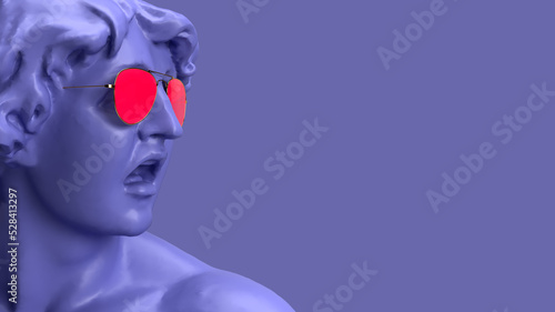 3d render, Very Peri color violet man's face with open mouth close-up in profile