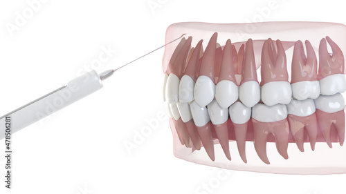 three-dimensional, illustration, medicals, science, rendering, artwork, teeth, dentist, dental, dentistry, treatment, health, hygiene, mouth, oral, process, gum, jaw, molar, orthodontic, anatomy, on white, isolated, anaesthesia