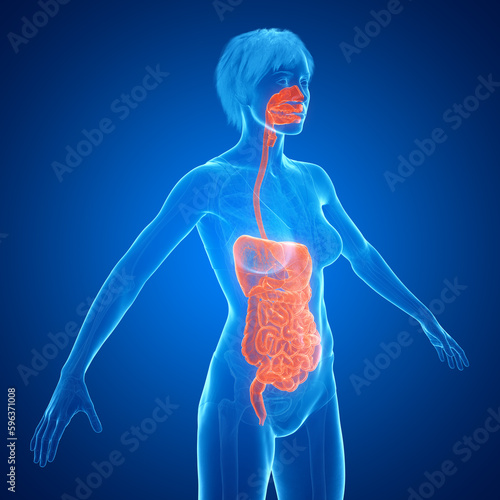 3D Rendered Medical Illustration of Female Anatomy - Digestive tract.