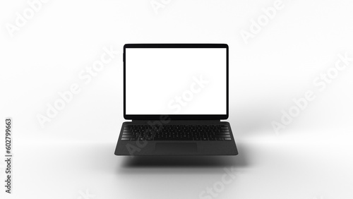 3D rendered Surface Laptop hovering with blank screen for content replacement. Possible use case: Mockup, Advertising, Commercial, Application Showcase