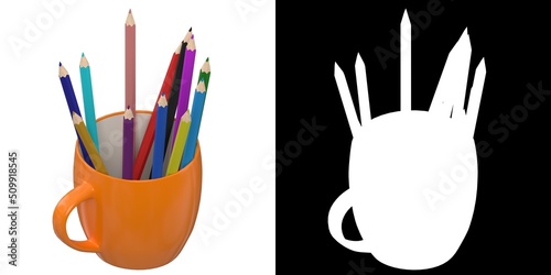 3D rendering illustration of a set of coloured pencils in a mug cup