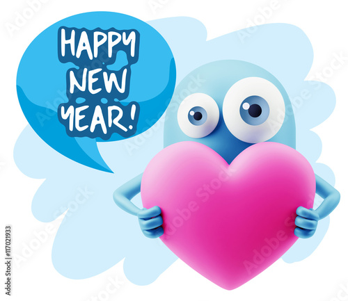 3d Rendering. Love Emoticon Face Holding Heart saying Happy New