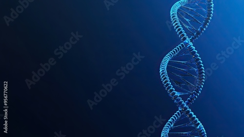 3D rendering of a blue DNA double helix spiral rotating against a deep blue backdrop