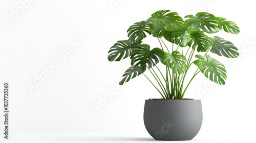 monstera, plant, three-dimensional, rendering, pot, isolated, white, background, foliage, houseplant, green, botanical, nature, decorative, interior, design, leaf, tropical, gardening, growth, home, furniture, modern, style, aesthetic, vibrant, studio, fresh, beauty, creative, environment, object, art, composition, high-coloured, visual, ornamental, organic, space, arrangement, flora, calmness, indoor, lush, exotic, still life, scene