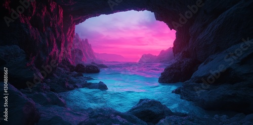 3D rendering of a neon sign with a rectangular frame, brightly lit theater