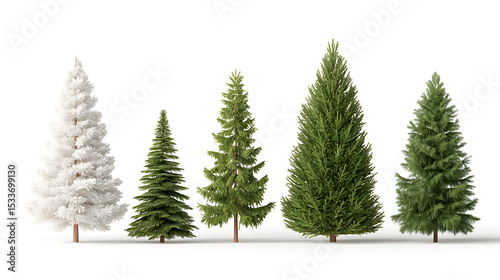 3D Rendering of Christmas pine trees . unadorned and decorated. Set of 4. For holiday celebration web banner advertising. 59678615 1