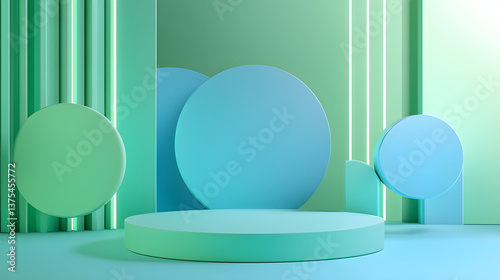 3d rendering of mind green and blue abstract geometric background. Scene for advertising, technology, showcase, banner, game, sport, cosmetic, business, metaverse. Sci-Fi Illustration. Product display