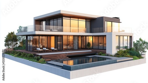 3d rendering of modern house by the river house, luxury, villa, modern, architecture, building, exterior, residential, property, designer
