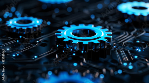 3D rendering of two blue holographic gears on a black background